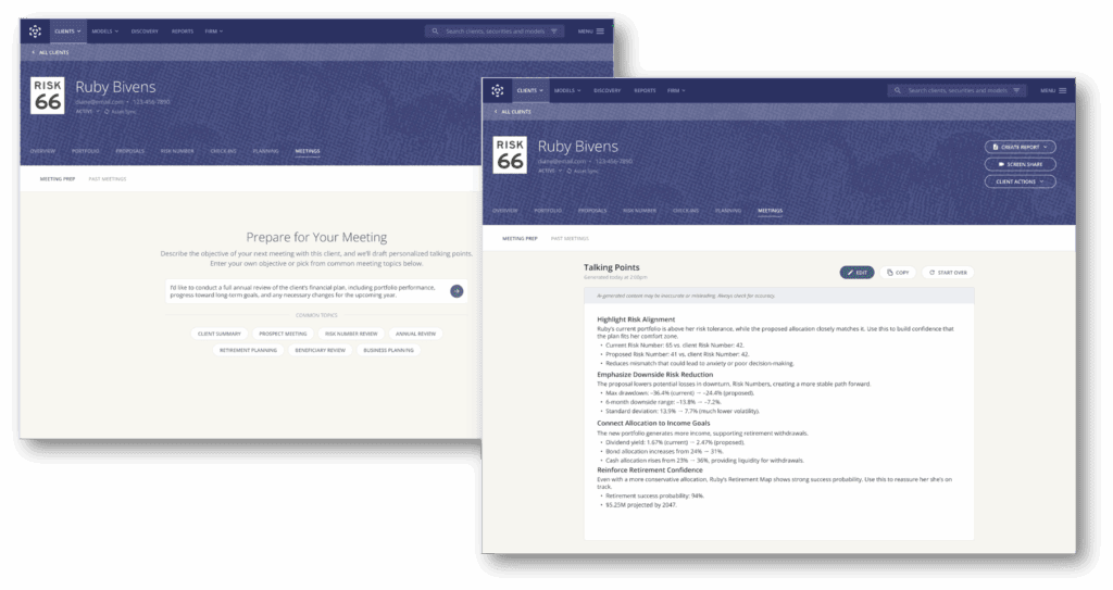 - AI-generated planning insights that surface actionable ideas — from Roth conversions to loss harvesting — personalized to each client.